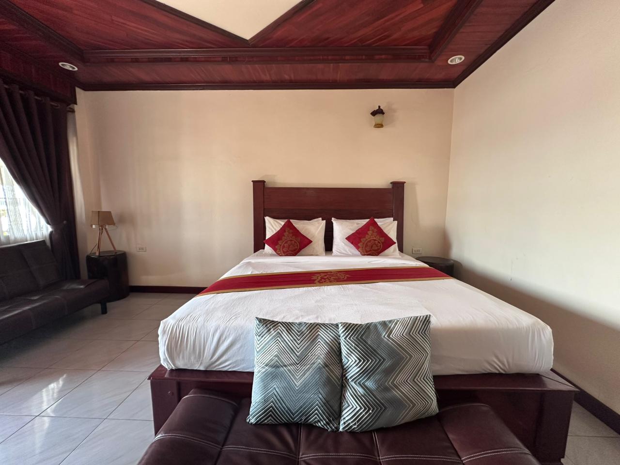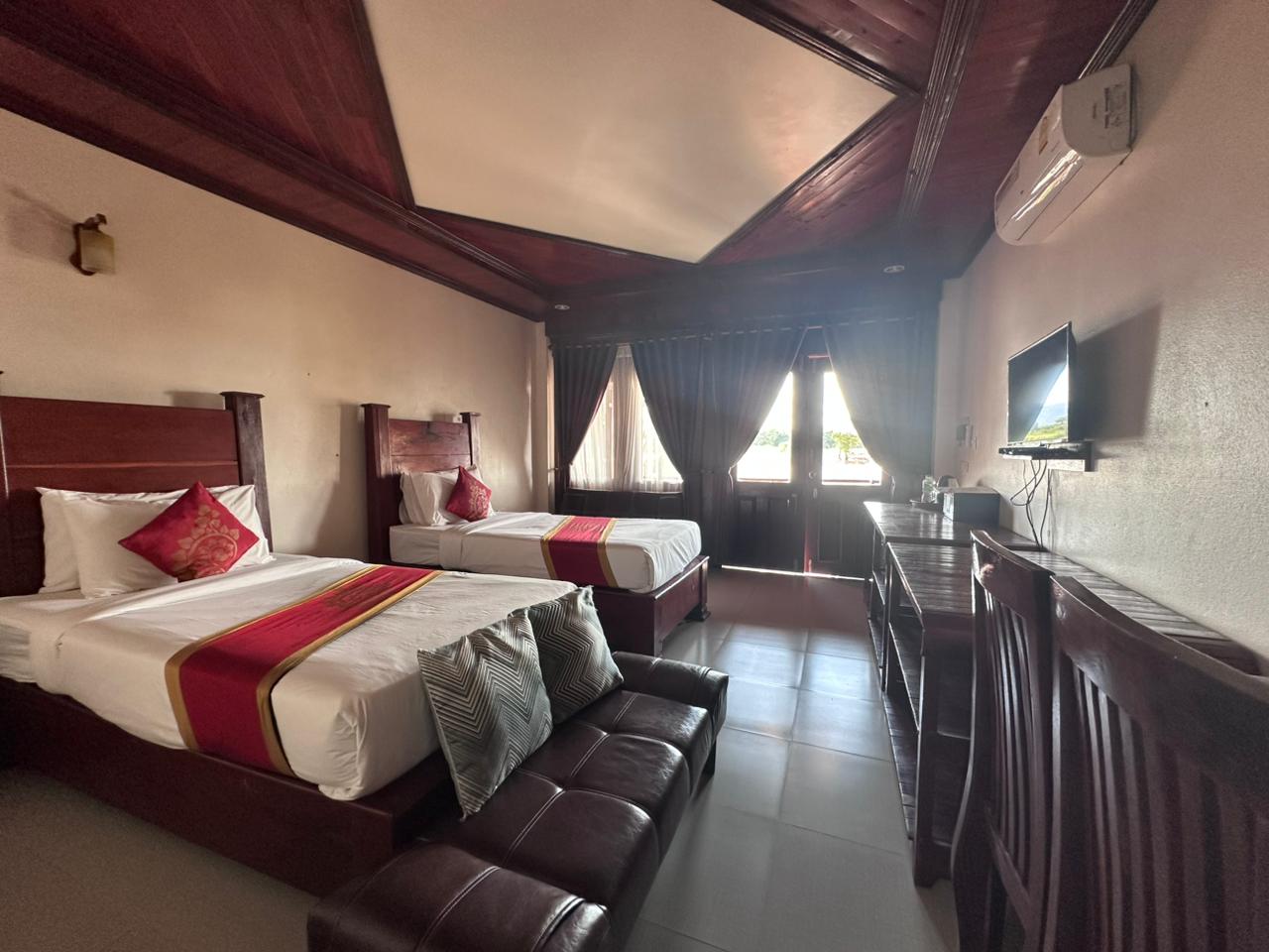 ຫ້ອງກວ້າງ 40 ຕາແມັດ ພ້ອມລະບຽງສ່ວນຕົວເຫັນວິວແມ່ນ້ຳຂອງ ສະດວກສະບາຍ ແລະ ກິ່ນອາຍອົບອຸ່ນແບບລາວ