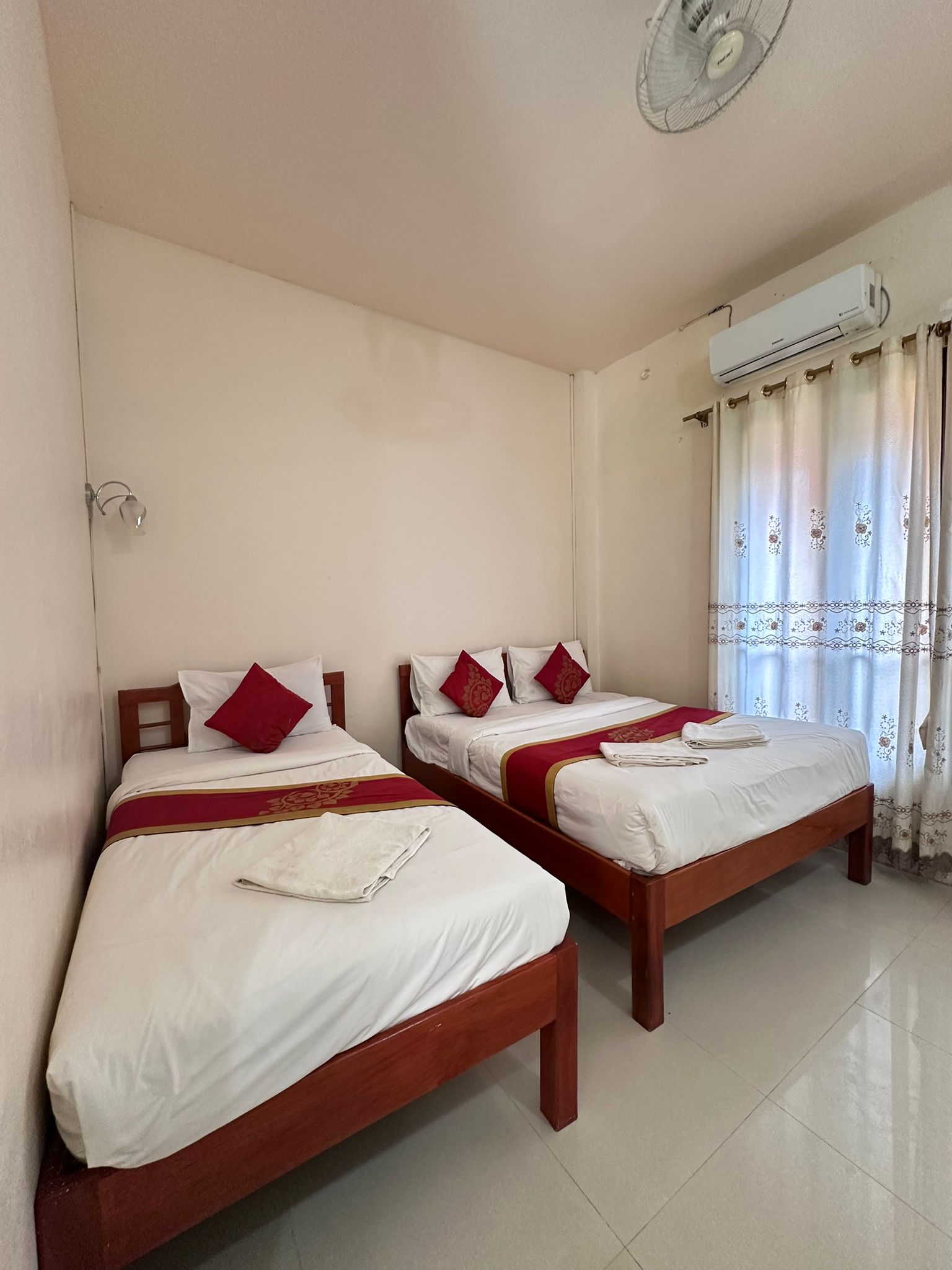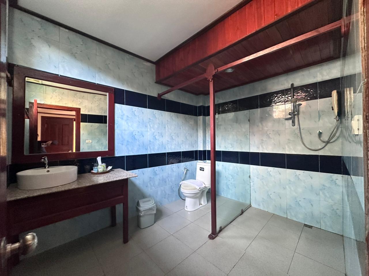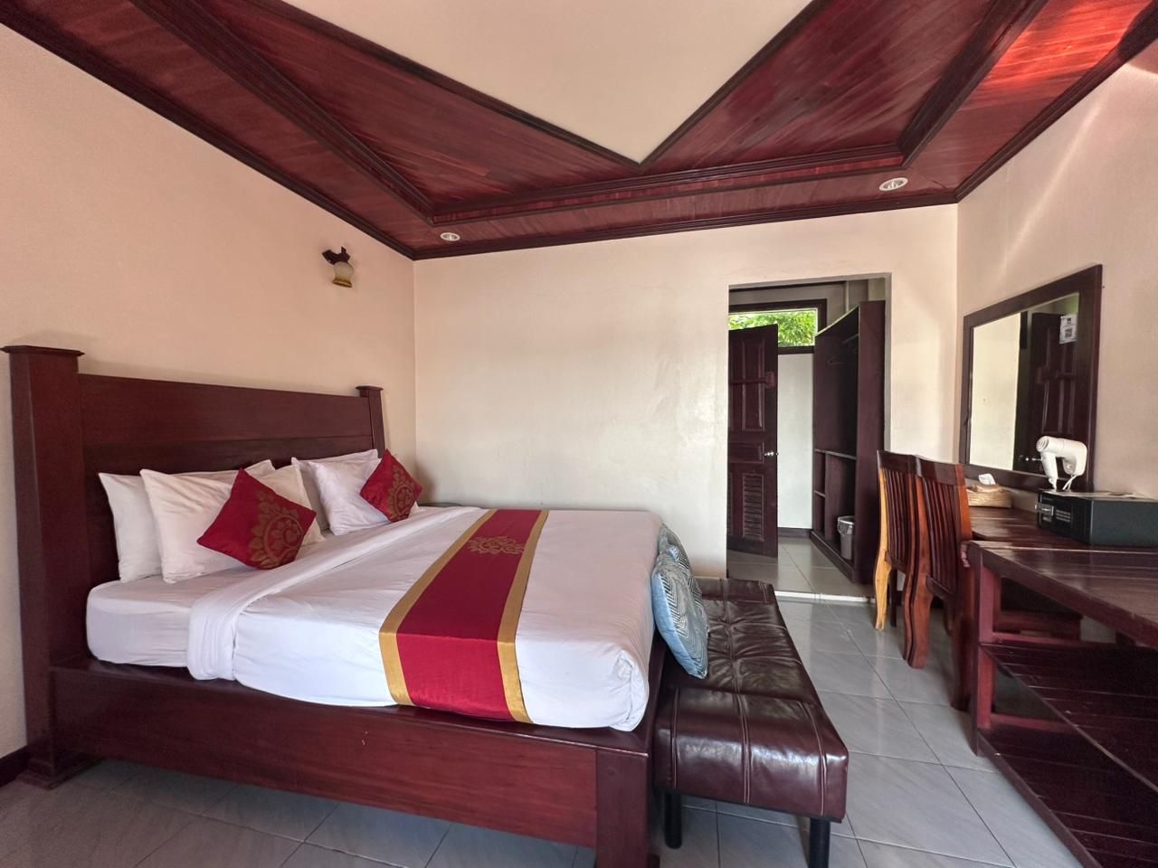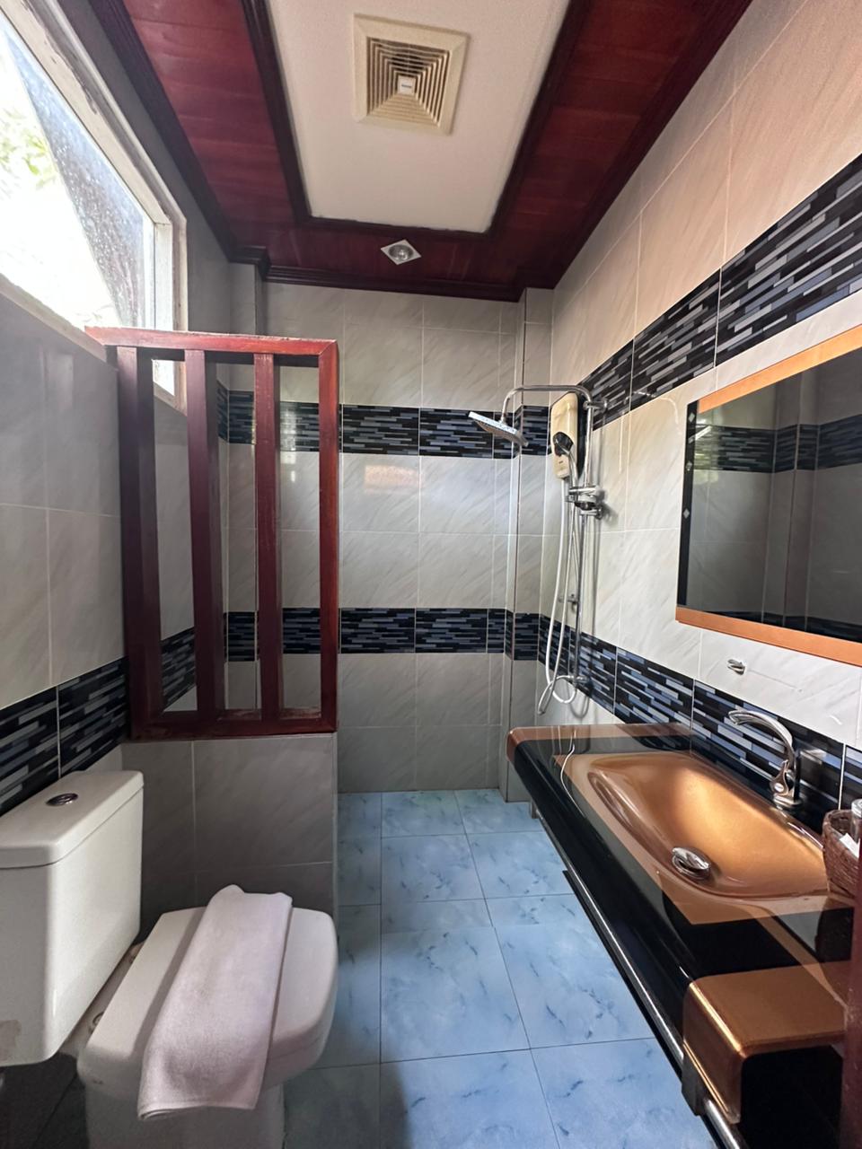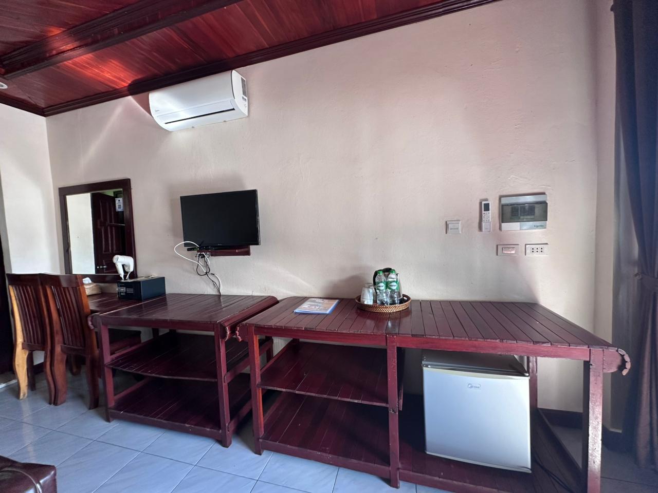 ບ້ານພັກສະໄຕລລາວ ບັນຍາກາດສວນຂຽວ ມີລະບຽງສ່ວນຕົວ ແລະ ທາງເລືອກພັດລົມ/ແອ